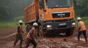 - L’État des Routes (Surtout en Saison des Pluies) : Les routes secondaires et l’accès aux sites miniers ou agricoles peuvent devenir impraticables pendant la saison des pluies, entraînant des retards coûteux dans la livraison du ciment, de l’acier ou des agrégats.